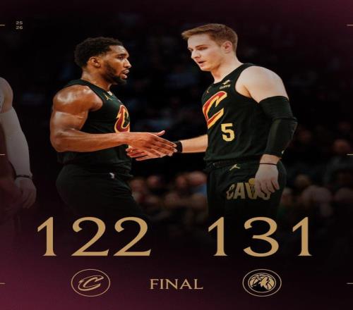 愛德華茲上籃得分,米切爾走步違例,麥克丹尼爾斯與梅里爾對射三分球。亨特大帽蘭德爾,梅里爾遠投不進,亨特搶斷愛德華茲,莫布里暴扣。距離終場僅剩1分鐘,比賽進入白熱化階段。麥克丹尼爾斯高難度單打命中,莫布里外線打鐵,麥克丹尼爾斯2罰不中,蘭德爾搶下前場籃板被犯規,蘭德爾2罰1中,克利夫蘭請求暫停。米切爾外線不中,麥克丹尼爾斯自拋自扣得手,梅里爾遠投不進,比賽時間走完。最終,森林狼以131比122險勝騎士,得以拒絕了20分逆轉。