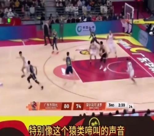 結(jié)果在抖音的CBA官方直播間,CBA的官方解說犯病了,他在第三節(jié)嘲諷廣東主場的球迷喊聲是“猿聲”,還說“聽到了兩岸猿聲”、“剛才誰要球的聲音特別喜感,特別像猿聲啼叫”、“感覺誤入了花果山”。