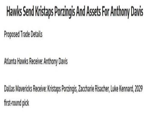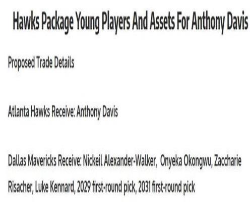 名記Shams在后續報道中指出,老鷹隊之所以如此廉價賣掉特雷楊,提升薪金靈活性以在交易截止日前引進另外一名頂薪球員是重要原因之一,而濃眉哥是他們的頭號目標。