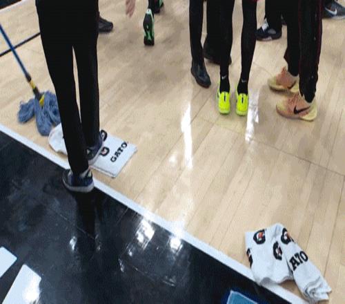 然后,你看到裁判和工作人員開始反復(fù)彎下腰,用手觸摸地板,表情凝重。接著,一群保潔人員拿著拖把進(jìn)場,開始一遍又一遍地擦拭。你等了半小時,一小時,一個半小時……大屏幕上始終沒有出現(xiàn)跳球倒計時,只有工作人員不知疲倦的擦地身影。