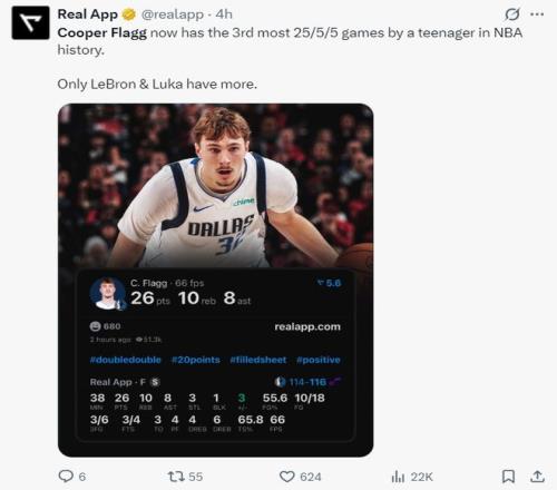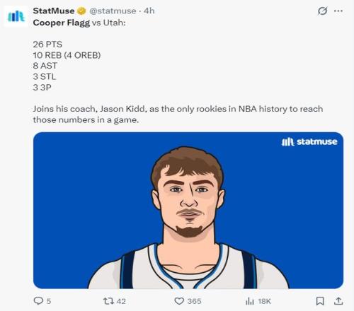5.弗拉格拿到26+10+8+3搶斷+3三分,成為NBA歷史基德后首位能單場達成這樣數(shù)據(jù)的球員;