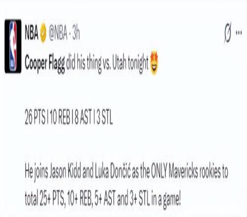 3.弗拉格新秀賽季拿到第三次單場25+5+5,僅次于詹姆斯、東契奇;