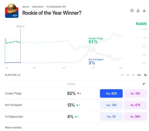 弗拉格依舊是2025屆最出色的那個,他目前的最佳新秀概率高達82%是斷崖第一的存在,黃蜂的克努佩爾只有13%。