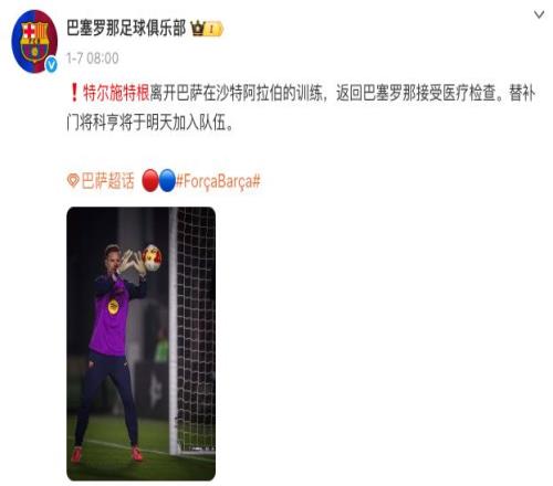 此時發生傷病,似乎讓特爾施特根的轉會出現了一些不確定性。好消息是,當地時間1月8日,特爾施特根在自己的社媒發布狀態,宣布自己將歸隊,備戰西超杯決賽。