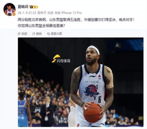 好像還不過癮,隨后,夏曉司老師再次發聲,“兩分險勝北京首鋼,山東男籃取得五連勝,外援珀塞爾打得堅決,絕殺對手!你覺得山東男籃全場最佳是誰? ”