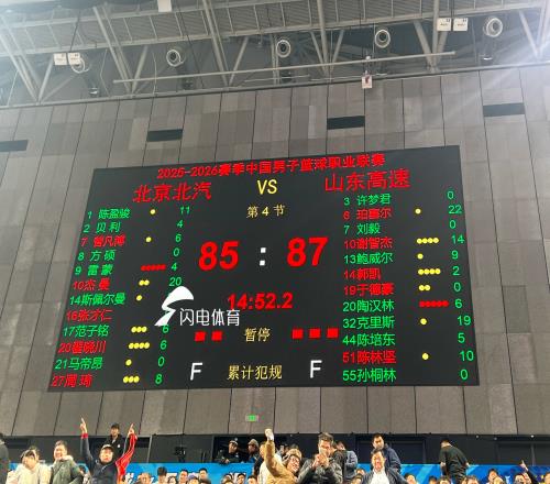 閃電體育1月9報道今晚,CBA常規賽,山東高速男籃客場對陣北京首鋼,經過四節鏖戰,山東高速男籃87-85絕殺北京首鋼。