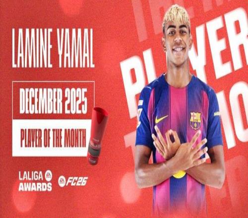 亞馬爾在11月當(dāng)選西甲月度最佳球員后,12月再度獲得該項(xiàng)榮譽(yù)。過去一個月,他在多場比賽中扮演關(guān)鍵角色,幫助巴塞羅那在2025年最后一個月的四場比賽中全部取勝。
