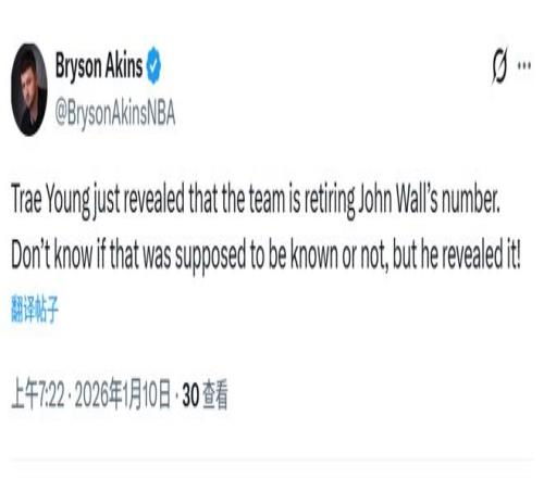 采訪中,作為奇才的新面孔,特雷-楊還順帶爆了個料,他提到奇才計劃退役沃爾的2號球衣。多位記者轉發并感謝了特雷-楊的爆料。