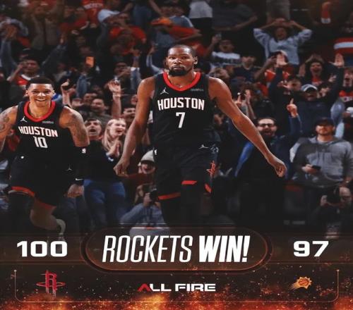 火箭主場以100-97艱難擊敗太陽,杜蘭特在比賽最后1.1秒命中一記關鍵三分,幫助火箭鎖定勝局。比賽過程也是無比艱難。火箭在前三節陷入被動,太陽憑借布克的出色發揮和高效的外線投射,一度領先多達11分。第三節中段和末節火箭才逐漸找回狀態,阿門和史密斯等人挺身而出,再加上杜蘭特開火,火箭末節反超5分。終場前,太陽本有機會絕殺,但布克的三分嘗試偏出,進攻籃板后又出現計時違例,將球權拱手讓給火箭。