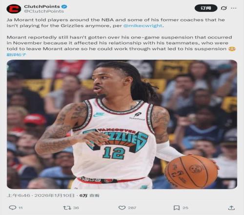 2025年休賽期,灰熊5年2.4億美元續(xù)約小賈倫-杰克遜。莫蘭特也有提前續(xù)約資格,最多能簽2年1.284億美元。當時莫蘭特一邊恭喜3J拿到大合同,一邊表態(tài)希望自己也能續(xù)約。但是,灰熊并沒有給莫蘭特提供續(xù)約合同。