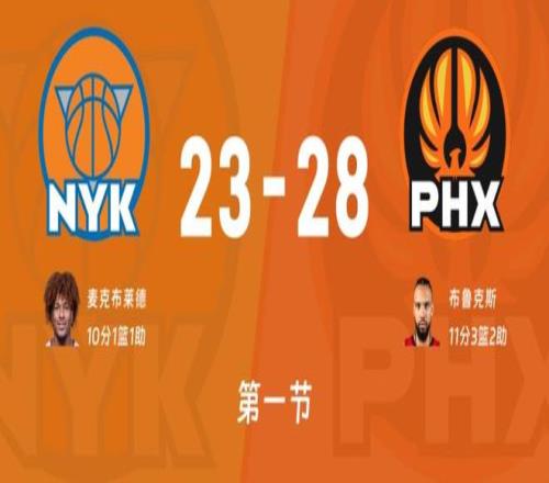 比賽進入首節(jié)末段,布倫森上籃造成布克犯規(guī)兩罰全中,狄龍前場板造成羅賓遜犯規(guī)回應(yīng)兩罰全中,布里奇斯、古德溫各自漂亮空切暴扣,緊接著古德溫又是前場籃板打成2+1,分差不知不覺來到了25-14,尼克斯籃板球問題太大了,危急時刻羅賓遜、阿奴諾比、布倫森打了一波6-0將比分追到20-25太陽喊出暫停,回到比賽雙方各得3分這樣首節(jié)戰(zhàn)罷太陽28-23領(lǐng)先尼克斯5分!