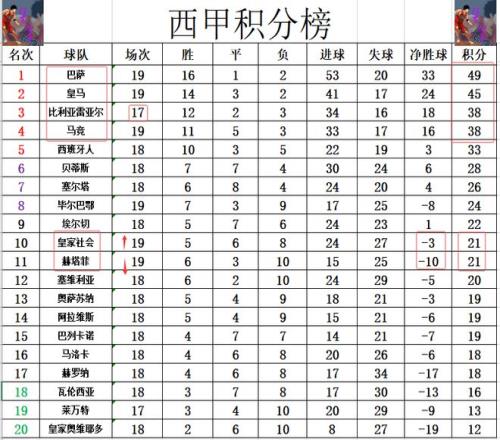 積分榜方面,巴薩4分優勢力壓皇馬領跑,比利亞雷亞爾少賽2輪落后皇馬7分,本輪他們有機會贏球縮小和皇馬的差距,若補賽也能贏,他們最理想的可以將差距縮小到1分,緊追皇馬坐穩第3。皇家社會絕殺赫塔菲后,憑借著凈勝球優勢超過赫塔菲,暫時擠入上半區。