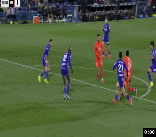 第89分鐘,赫塔菲獲得獲得中線處任意球機會,米拉操刀主罰大力往禁區里吊過去,阿蘭巴里禁區弧頂處扛住防守頭球擺渡一蹭,胡安米小禁區搶點凌空掃射得手,赫塔菲1:1扳平比分。赫塔菲球員在開心的慶祝“絕平”,然而補時6分鐘最后30分鐘,他們卻遭到重擊,皇家社會右側角球機會,久保建英操刀主罰兜傳后點,門將索里亞出擊失誤沒有擊打到球,阿蘭布魯后點搶點甩頭攻門,皮球擊地后彈入網窩,皇家社會2:1壓哨絕殺赫塔菲。