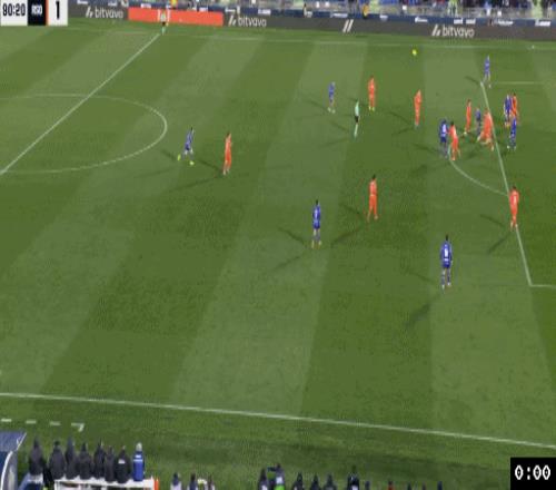 赫塔菲本賽季初表現不錯,只不過近2個月他們表現低迷,近7輪1勝1平5負,今天比賽之前已經是4輪不勝。開場后兩隊展開對攻,第14分鐘,赫塔菲右路快速反擊,費梅尼亞斯突破下底傳中,梅斯坦薩禁區搶點頭槌攻門頂偏了。第35分鐘,皇家社會左路快攻,奧亞薩瓦爾帶球推進到禁區角上往禁區內斜塞,伊格萊西亞斯回防解圍失誤,將球擋到了門德斯跟前,門德斯禁區內一步迎球左腳大力掃射,皮球直入球門近端死角,皇家社會1:0首開紀錄。