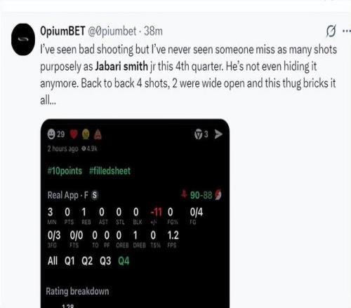 休媒:小賈第四節的表現無論是進攻還是防守都是火箭輸球的關鍵,他一直是球隊最薄弱的一環,在申京受傷后他的表現更是糟糕透頂。