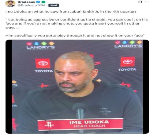 火箭記者Bradeaux:我認為小賈低迷的問題烏度卡也該擔責,小賈正在經歷我見過最艱難的時刻,他本該被棄用,但烏度卡依舊不換下他。