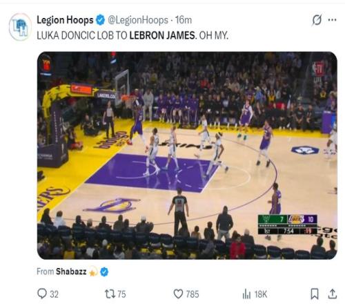 沒想到首節東契奇又為老頭傳了一個跨越半場的空接助攻,勒布朗高高躍起完成了雙手炸框,首節5中2拿到5分2籃板2助攻1搶斷,勒布朗也完成了3500助攻里程碑。