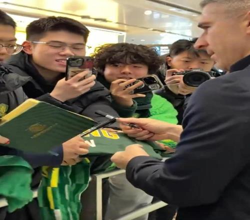 期盼已久!很多國安球迷自發(fā)接機,和蒙哥馬利索要簽名并合影,蒙哥馬利也第一時間感受到了國安球迷的熱情。俱樂部工作人員、部分球員迎接新帥,其中,張稀哲手捧著鮮花也迎接新帥。 有工作人員向蒙哥馬利介紹:“這是我們的隊長,10號球員。他曾經(jīng)和你交手過,在12年前。”