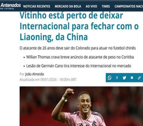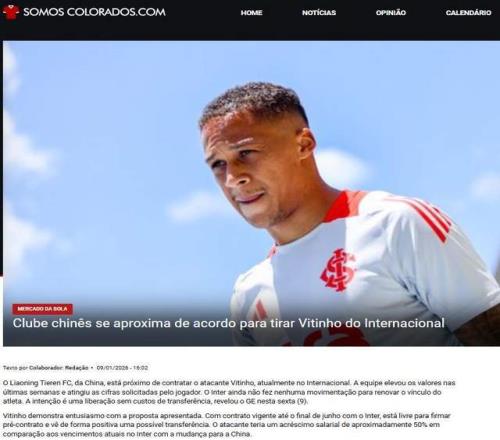根據巴西多位記者,甚至是巴西國際跟隊記者爆料,遼寧鐵人在最近提高了報價,比他在巴西國際的收入高出50%,達到了維蒂尼奧的薪資要求,而巴西國際也有意0轉會費放人,維蒂尼奧本人對加盟遼寧鐵人非常感興趣,會在最近幾天做出最后的決定。