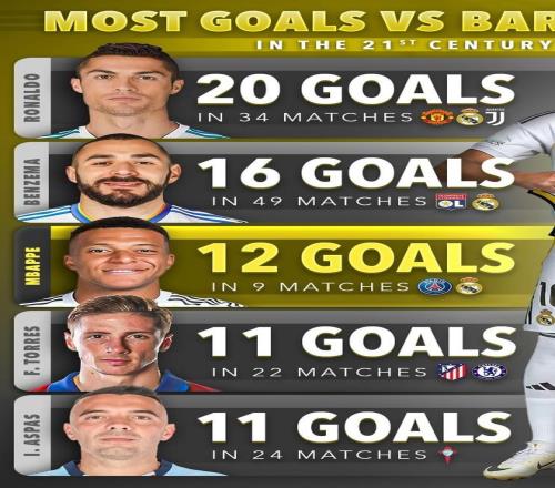 本世紀對陣巴薩進球榜:C羅20球居首,姆巴佩12球第三 懂球帝 2026-01-10 22:11:13 近日,Score90統(tǒng)計了21世紀對陣巴塞羅那進球最多的球員榜單。C羅以20球(34場)居首,本澤馬以16球(49場)位列第二。姆巴佩雖僅交手9場,但已攻入12球。21世紀對陣巴塞羅那進球最多的球員榜單1.C羅:20球34場比賽2.本澤馬:16球49場比賽3.姆巴佩:12球9場比賽4.托雷斯:11球22場比賽5.阿斯帕斯:11球24場比賽西甲免費觀看_C羅免費觀看_姆巴佩免費觀看_西甲高清在線_C羅高清在線_姆巴佩高清在線 西甲 C羅 姆巴佩 本澤馬 進球榜 巴塞羅那隊 基利安·麥巴比 基斯坦奴·朗拿度 巴薩遠在巴列卡諾 上一篇: 阿隆索:姆巴佩好多了,今天訓練結束后我們再做決定 下一篇: 世體:巴薩更衣室喜歡西超杯決賽打皇馬,擊敗皇馬更有滿足感