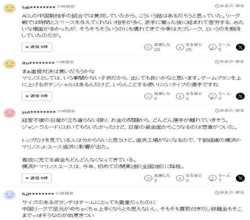 不難看到,幾乎清一色的日本球迷都對讓克勞德離開感到失望和遺憾,認為他是很有潛力的球員。我們也期待22歲的多哥后腰能成為新賽季中超的最大驚喜!(老邱)