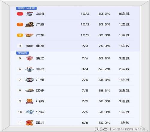 ③、榜首前三積分完全相同,分別是上海、廣廈和廣東隊!