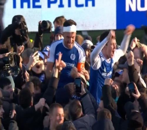 當(dāng)終場(chǎng)哨響,奇跡正式誕生時(shí),激動(dòng)的麥克爾斯菲爾德球迷瘋狂沖進(jìn)場(chǎng)內(nèi),與球員一起激動(dòng)擁抱慶祝。