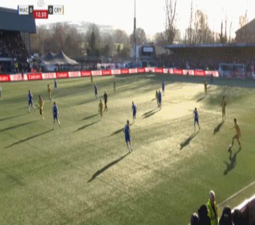 久攻不下情況下,水晶宮后防線卻在防守定位球時漏人。第43分鐘,道森搶點破門,麥克斯菲爾德1-0領先。