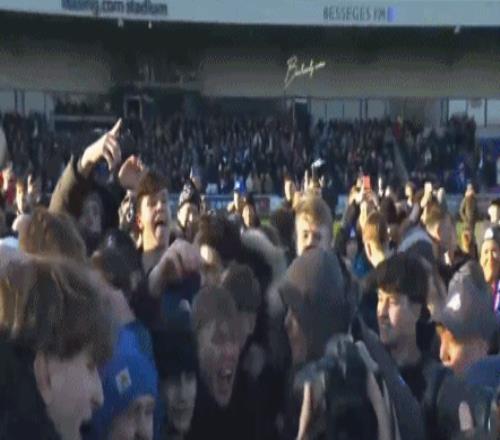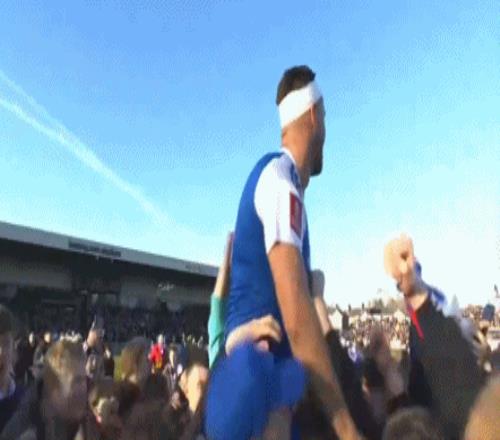 在主裁判吹響終場哨之后,5000名球迷涌入球場,將進(jìn)球功臣道森扛了起來。麥克爾斯菲爾德主帥約翰-魯尼,也就是曼聯(lián)傳奇射手韋恩-魯尼的弟弟,也受到了英雄般的待遇。