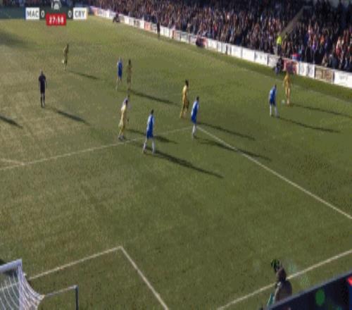 第43分鐘,道森搶點破門,麥克斯菲爾德1-0領先衛冕冠軍水晶宮!