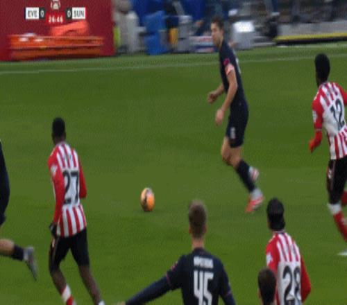 第30分鐘,馬延達做球,勒費埃凌空兜射破門,桑德蘭1-0!