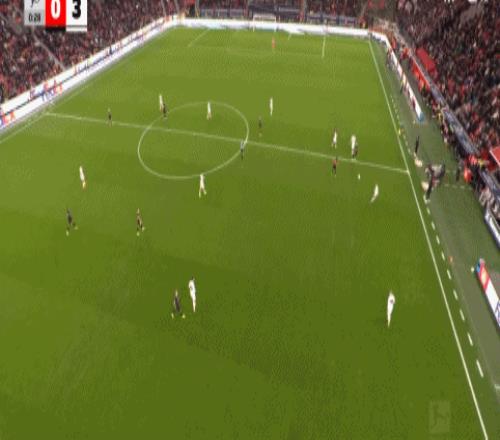 第45分鐘,梅開二度,萊韋林禁區(qū)外調(diào)整兜射破門,斯圖加特3-0