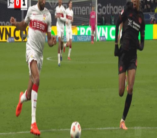 易邊再戰,4球領先的斯圖加特收著踢,勒沃庫森這邊還是機會寥寥,直到第64分鐘,勒沃庫森前場左側壓上,連續的配合,加西亞禁區前沿策應直塞,蒂爾曼插上突入禁區搶點時被查伯特推倒,主裁果斷吹罰了點球。格里馬爾多操刀主罰穩穩命中,勒沃庫森終于是1:4扳回一球。之后勒沃庫森又是一陣低迷,第86分鐘,隨著杰利奇禁區弧頂處還算不錯的機會球踢飛后,勒沃庫森主場1:4慘敗。