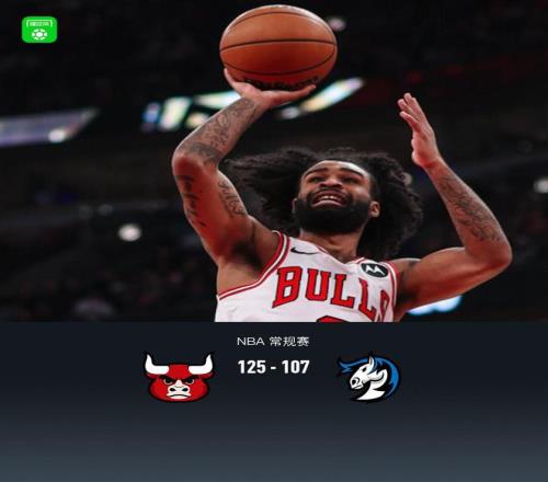 第四節公牛赫爾特拿下8分,獨行俠杰登-哈迪拿下11分,最終公牛125-107戰勝獨行俠