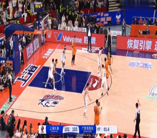下半場雙方持續拉鋸,第四節還剩13秒廣東領先4分,上海憑借哈維搶斷上籃拖入加時,加時賽最后時刻廣東領先2分,胡明軒關鍵罰球競兩罰全失,比賽最后1.6秒,上海最后一攻哈維接球極限超遠三分直接絕殺,最終上海104-103廣東,將大比分扳至1-1。