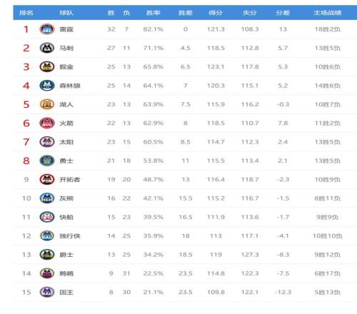 今日比賽后西部排名沒有變動(dòng),只是各隊(duì)之間的勝場(chǎng)差有所變化。