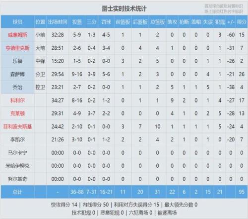 來看看四節比分(黃蜂在前):45-14、32-24、38-26、35-31。爵士球員科迪-威廉姆斯正負值-60,NBA歷史最低紀錄(自有統計以來)。此前記錄是開拓者探花秀亨德森的-58(2024年3月,開拓者客場82-142不敵熱火)。