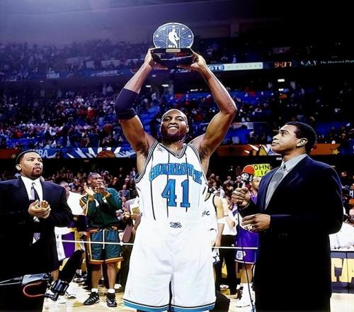 而除了這座含金量極高的全明星賽MVP之外,他還三次入選了全明星陣容,雖然都是作為替補(bǔ)入選,但畢竟在當(dāng)時競爭較為激烈的東部,這已經(jīng)是相當(dāng)不容易的表現(xiàn)了。不僅如此,他還在96-97賽季入選了最佳第二陣容,97-98賽季入選了最佳第三陣容,當(dāng)時和他競爭的,分別是格蘭特·希爾、卡爾·馬龍、斯科蒂·皮蓬、蒂姆·鄧肯等傳奇鋒線,所以他的入選同樣含金量十足。此外,他還在1995年加冕為了三分大賽的冠軍,證明了自己出色的投射能力。