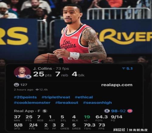 科林斯剛加盟快船隊時,只能擔任替補角色。不過,在打了九場比賽之后,他便被正式提上首發。進入2026年后的里,他的表現始終十分出色,投籃總共57次命中41次(命中率大約為72%),其中三分球24投16中(命中率大約為67%),已然成為快船隊當前除倫納德之外,最為可靠的火力輸出點。