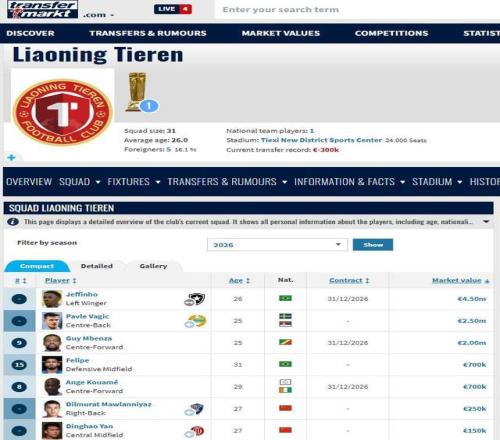 更恐怖的是,全隊德轉即時身價已經達到1186萬歐,作為一支中超升班馬,竟然直接排進了前6名,僅次于申花、海港、泰山、國安和成都蓉城,超越了浙江、云南玉昆、天津津門虎等10支中超勁旅,非常值得期待。