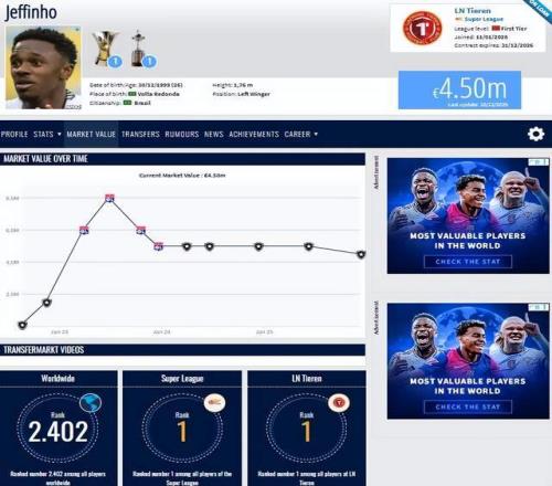 熱菲尼奧身價高達450萬歐元,超過米特里策和克雷桑,成為中超第一身價的外援,瓦吉奇是瑞典國腳后衛,身價高達250萬歐元,不僅是中超第一身價的后衛,也是全中超身價第8名的球員。此外,全中超第9身價的是球隊確定留隊的剛果外援前鋒姆本扎,這3名球員總身價900萬歐,這已經超過中超半數的球隊身價。