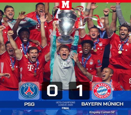 同樣是2020年,歐冠決賽拜仁vs巴黎圣日耳曼。科曼打進唯一進球,拜仁奪得分量最重的大耳朵杯。