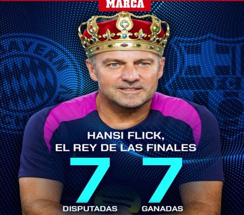 《馬卡報》表示,在決賽舞臺上,弗里克執教的球隊,總有穩定發揮,最終奪得冠軍。這樣的故事,已經發生了7次:
