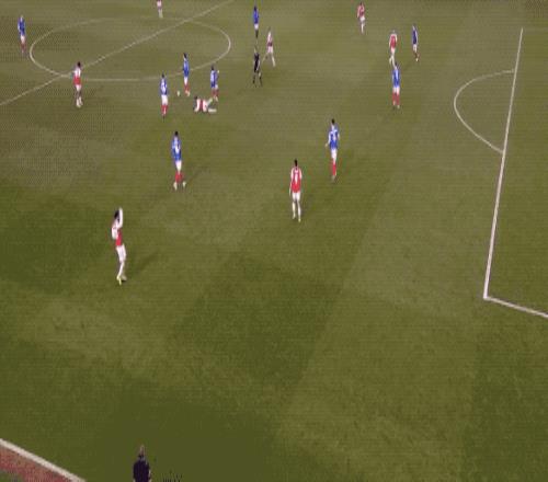 上半場結束,阿森納2-1暫時領先。下半場開始僅僅6分鐘,熱蘇斯就助攻馬丁內利梅開二度。第72分鐘,馬丁內利上演帽子戲法。