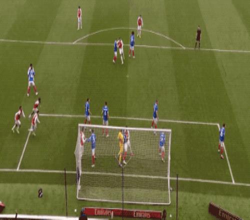 第25分鐘,馬杜埃凱制造角球并親自主罰,馬丁內利悄悄溜到前點,獅子甩頭,阿森納兩個角球都轉化為了進球。