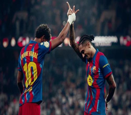 第36分鐘,拉菲尼亞將功補過!巴薩后場斷球,再次發動反擊,拉菲尼亞勁射遠角得手,1:0!巴塞羅那率先打破僵局。領先之后的巴薩依舊保持進攻端的主動權,費爾明、亞馬爾連續勁射,均被庫爾圖瓦全力撲出。