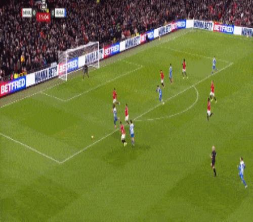 第41分鐘,曼聯前場任意球機會,B費一記貼地斬稍稍偏出立柱。