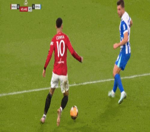 第12分鐘,維爾貝克左側下底傳中,魯特爾頭球被擋出,格魯達補射破門。布萊頓1-0領先曼聯。