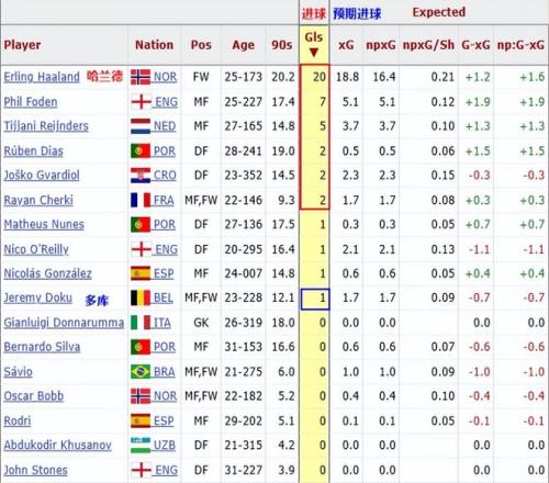 曼城本賽季在英超有一個問題,就是很依賴于哈蘭德的進球效率。他21場英超打入20球,但是除了哈蘭德之外,第二得分點是7球的福登,隨后是5球的賴因德斯,接下去就是2名打入2球的中衛。