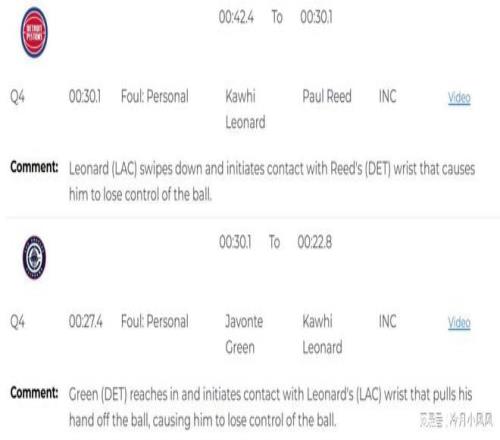 比賽還剩下30秒時(shí),裁判報(bào)告指出,倫納德在搶斷時(shí)打到了保羅里德的手腕,應(yīng)該吹罰倫納德犯規(guī)。比賽還剩下27秒時(shí),賈文特格林在防守時(shí)打到了倫納德手腕,導(dǎo)致后者失去對(duì)球權(quán)的控制,應(yīng)該吹罰格林犯規(guī)。